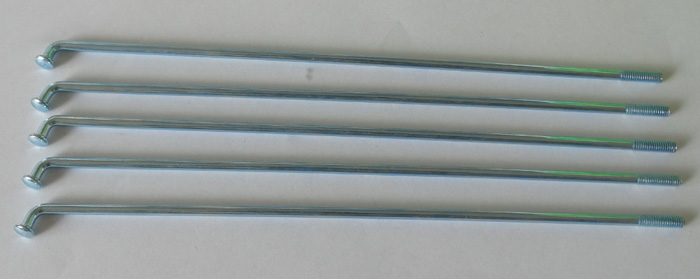 摩托車輻條,尺寸:120-230(mm),型號:C90。主要規格有 8G、9G、10G、11G、12G、13G、14G、15G長度為45mm-308mm,條母有普通型、銑槽、加長型銑槽及加長型銅條母。主要用于連接摩托車外輪和輪轂。摩托車輻條一端有個90度彎角穿過車抽盤的小孔,另一端有輻條帽穿過輪轂的輻條孔。通過調節輻條的松緊來調整摩托車車輪轉動是不是在同一個平面上。這樣,摩托車行駛會更穩。