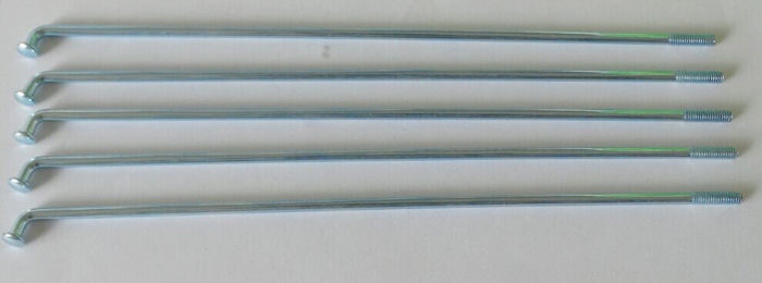 摩托車輻條,尺寸:120-230(mm),型號:C90。主要規格有 8G、9G、10G、11G、12G、13G、14G、15G長度為45mm-308mm,條母有普通型、銑槽、加長型銑槽及加長型銅條母。主要用于連接摩托車外輪和輪轂。摩托車輻條一端有個90度彎角穿過車抽盤的小孔,另一端有輻條帽穿過輪轂的輻條孔。通過調節輻條的松緊來調整摩托車車輪轉動是不是在同一個平面上。這樣,摩托車行駛會更穩。