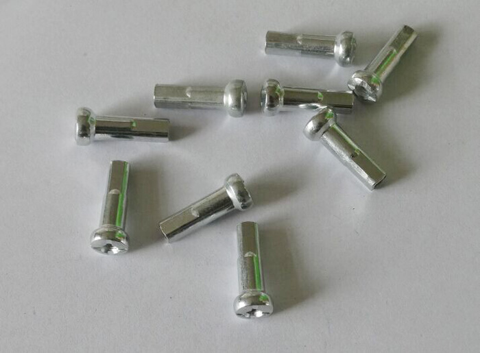 摩托車輻條的制作工藝:先選用優質輻條鋼絲(橫截面形狀:圓形截面尺寸:3.5(mm)長度:任意(m)重量:任意(kg/km)抗拉強度:10000(MPa))盤鋼形式,放在輻條機旁。把輻條鋼絲穿過輻條機,啟動輻條機,通過對輻條鋼絲的調直,切斷,彎頭,彭頭,攻絲,幾個過程,摩托車輻條的半成品就出來了,再經過淬火,鍍鉻,檢驗,涂油,包裝,摩托車輻條的成品就出來了。